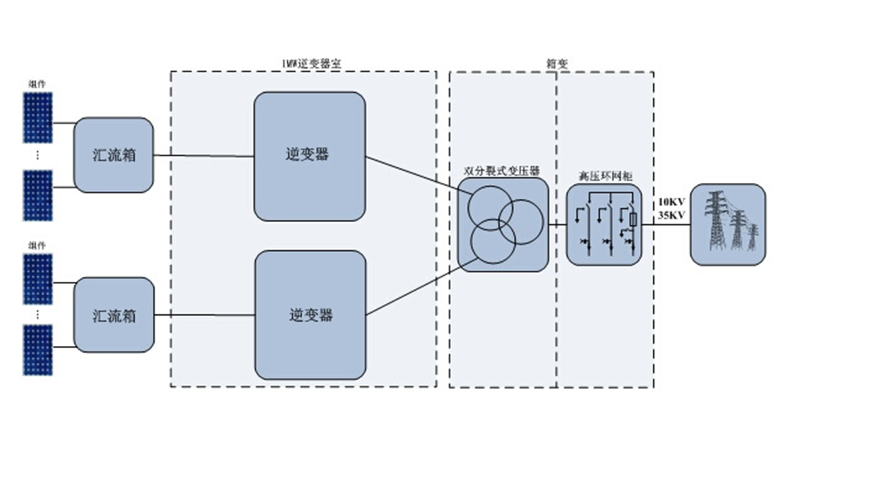 分布式光伏發(fā)電系統(tǒng)的基本設備包括光伏電池組件、光伏方陣支架、直流匯流箱、直流配電柜、并網(wǎng)逆變器、交流配電柜等設備,其中逆變器是將直流電轉換成交流電的設備。有太陽輻射的條件下,光伏發(fā)電系統(tǒng)的太陽能電池組件陣列將太陽能轉換輸出的電能,經(jīng)過直流匯流箱集中送入直流配電柜,由并網(wǎng)逆變器逆變成交流電供給建筑自身負載,多余或不足的電力通過聯(lián)接電網(wǎng)來調節(jié)。