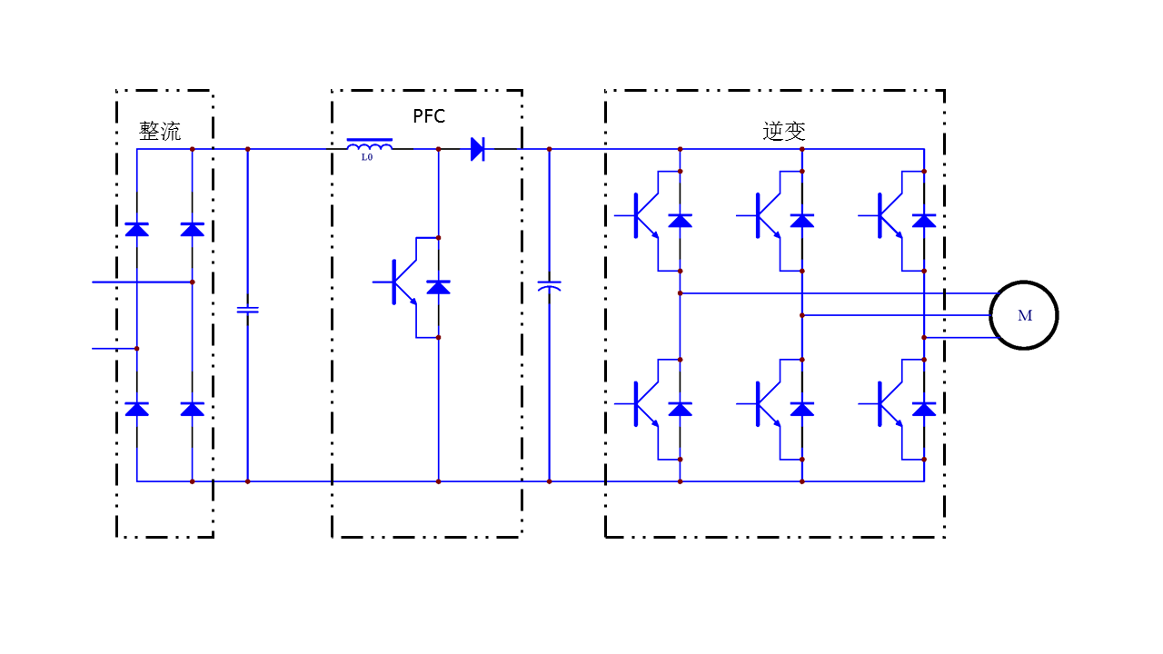 變頻家電應用行業需求變頻家電領域的負載主要為調速電機,除輸出功率大小的不同外,其主電路拓撲結構基本類似,因此下面主要以變頻空調為主進行介紹。 變頻空調主要由內機和外機兩部分組成,內機主要由中央處理器和風扇組成,負責空調的控制和室內的出風,外機主要是通過壓縮機和風扇,完成熱交換,從而達到制冷或者制熱的目的,外機的功耗占據了整個空調功耗的主要部分。變頻空調的原理與變頻器類似,對壓縮機的控制是依靠內部IGBT的開關來調整輸出電源的電壓和頻率,根據電機的實際需要來提供其所需要的電源電壓,進而達到節能、調速的目的。